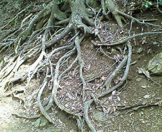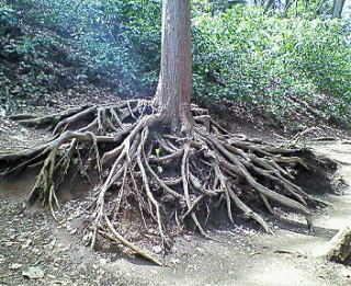 次の写真は高尾山のハイキングコースで見つけた木の根達です。